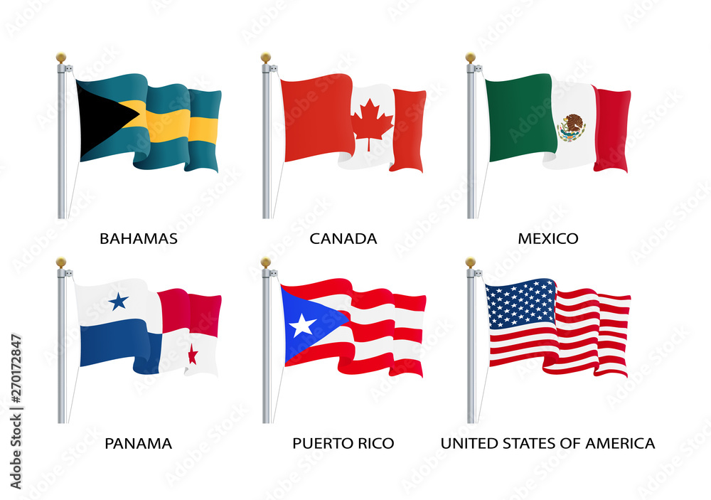 Realistic Waving Flags Of North America Continent Usa Canada Bahamas Mexico Panama Costa Rico Flag On Flagpole Patriotic Symbols Isolated Vector Illustration Eps 10 Stock Vector Adobe Stock